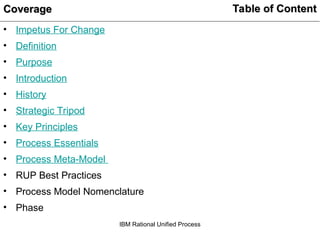 • IBM Rational Unified Process is a dynamic iterative and incremental