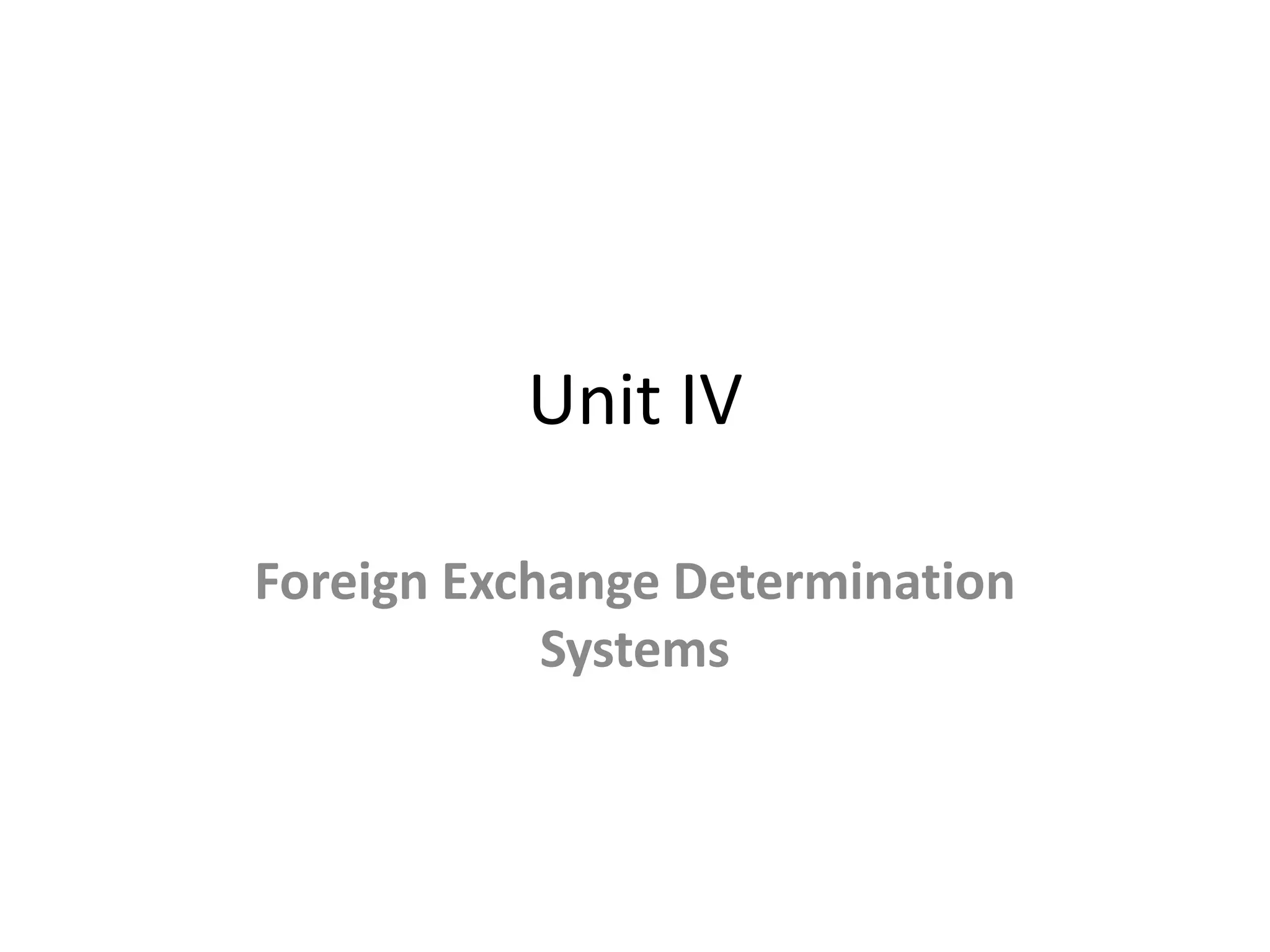 1. The document discusses different foreign exchange determination systems and exchange rate regimes. It describes purchasing power parity theory and the balance of payments theory, which says exchange rates are determined by demand and supply in the foreign exchange market.