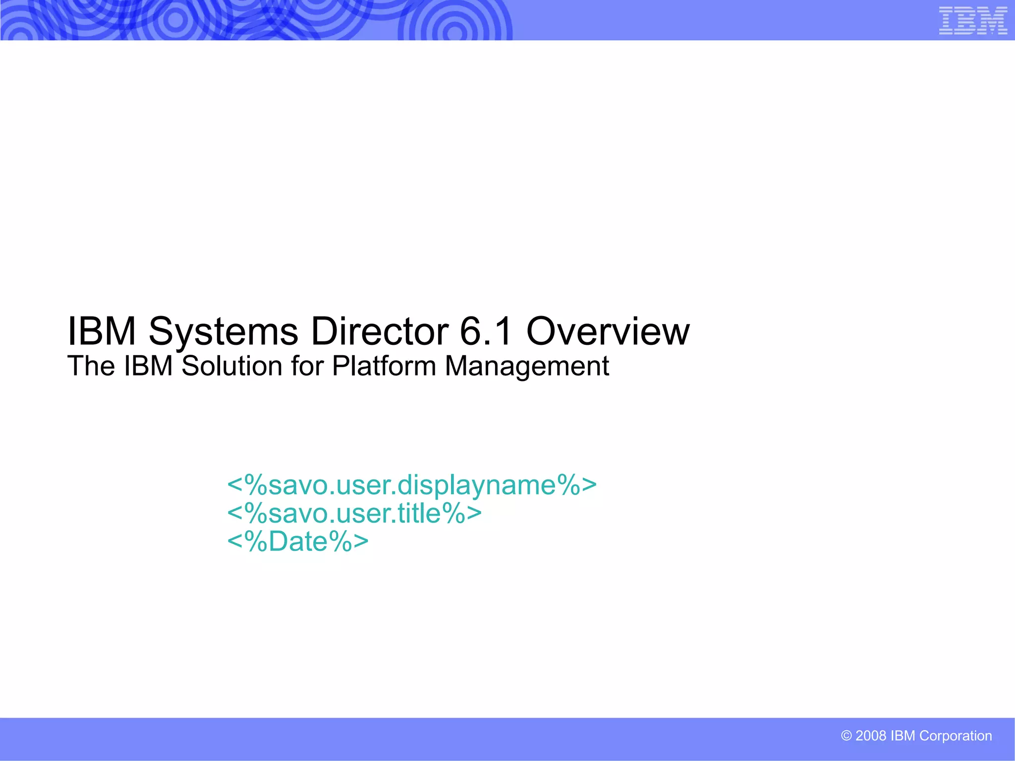 IBM Systems Director 6.1 is a unified platform management solution designed to simplify management of physical and virtual systems, reducing IT service delivery costs and improving business resiliency. The solution targets large and mid-sized enterprises, integrating with higher-level management tools and facilitating energy efficiency and compliance requirements. Key features include automated support, a user-friendly interface, and the ability to manage multiple environments with a single tool.