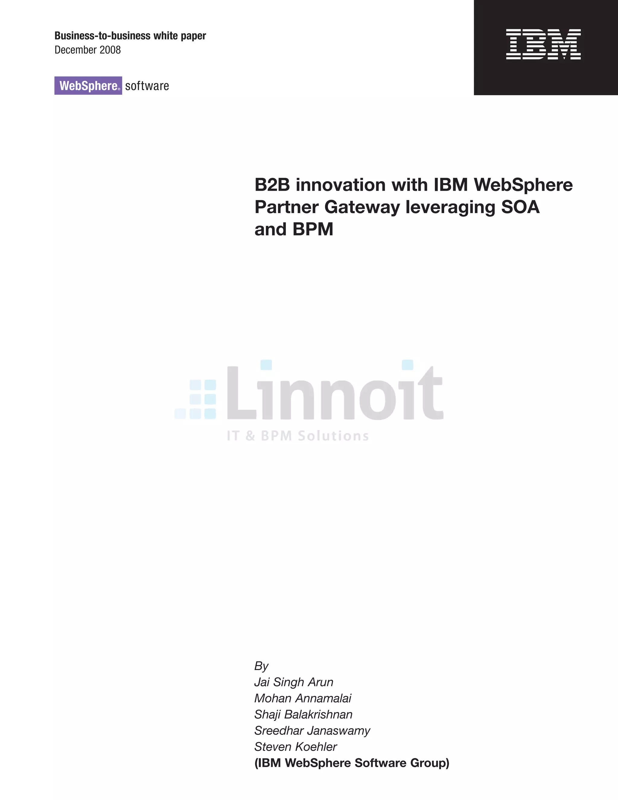 This white paper discusses IBM's B2B integration solutions, emphasizing the importance of flexible and scalable environments for managing partner integration, particularly through the WebSphere Partner Gateway. The document highlights the critical need for secure communication, extensive community management, and the integration of SOA and BPM for effective multienterprise integration. Furthermore, it outlines the innovative frameworks and features that the WebSphere Partner Gateway provides, enabling businesses to efficiently onboard partners and manage complex B2B interactions.