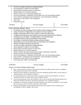 Ibrahim Attar is seeking a job that provides growth, excellence and self-development. He has over 5 years of experience managing luxury boutiques in Dubai, including Jimmy Choo, Marni and Balenciaga. His responsibilities included managing staff, budgets, inventory, marketing and achieving sales targets. He has a commercial degree from Aleppo University and international qualifications in leadership and management.