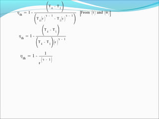 The document discusses key parts of internal combustion engines including pistons, valves, spark plugs, cam shafts and describes cylinder arrangements like inline-4 and V6. It also covers topics like engine size measured in cubic centimeters, overhead camshafts, and the four stroke combustion cycle. The summary provides an overview of internal combustion engines, their classification based on fuel type, ignition method, cylinder arrangement and other factors. It outlines the basic idea of how combustion drives the piston to convert the motion to a rotating crankshaft.