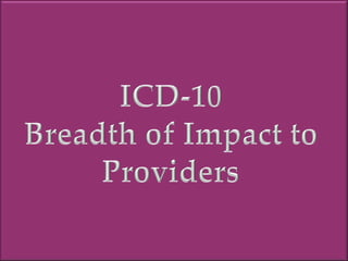 ICD-10 is a comprehensive healthcare coding system introduced by the WHO in 1993 to replace the outdated ICD-9, essential for accurately documenting modern medical diagnoses and procedures. The transition to ICD-10 involves significant changes to healthcare IT systems, staff education, and business processes, with a deadline for compliance set for October 1, 2014, where non-compliance can lead to claim denials. This transition presents challenges, including an increase in codes, the need for dual coding, and potential disruptions to cash flow and revenue cycles.
