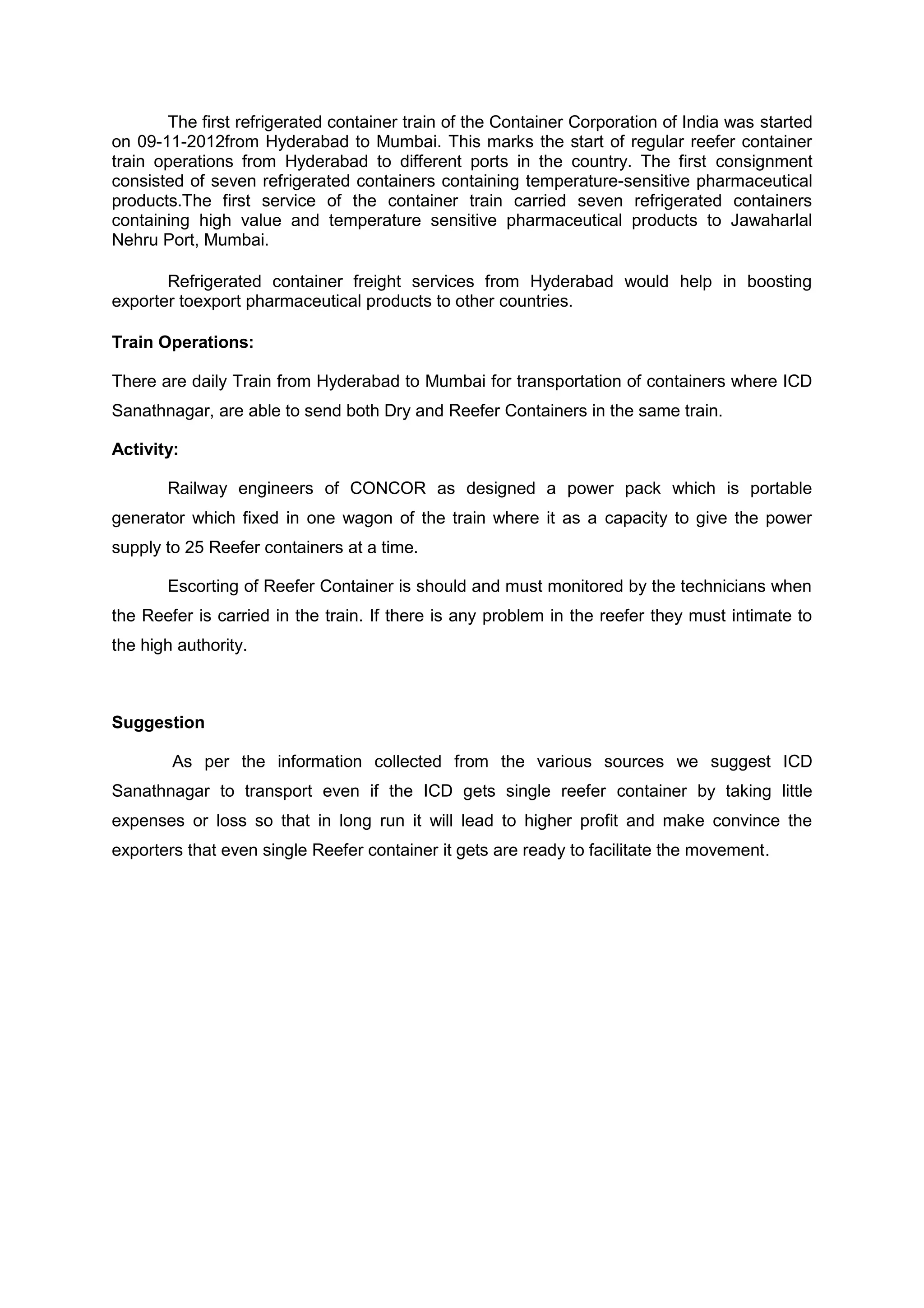 The first refrigerated container train operated by the Container Corporation of India departed Hyderabad for Mumbai on November 9th, 2012. It carried seven refrigerated containers containing pharmaceutical products, marking the start of regular refrigerated container train service between Hyderabad and Indian ports. Refrigerated container freight service from Hyderabad will help boost exports of pharmaceutical products from India to other countries.