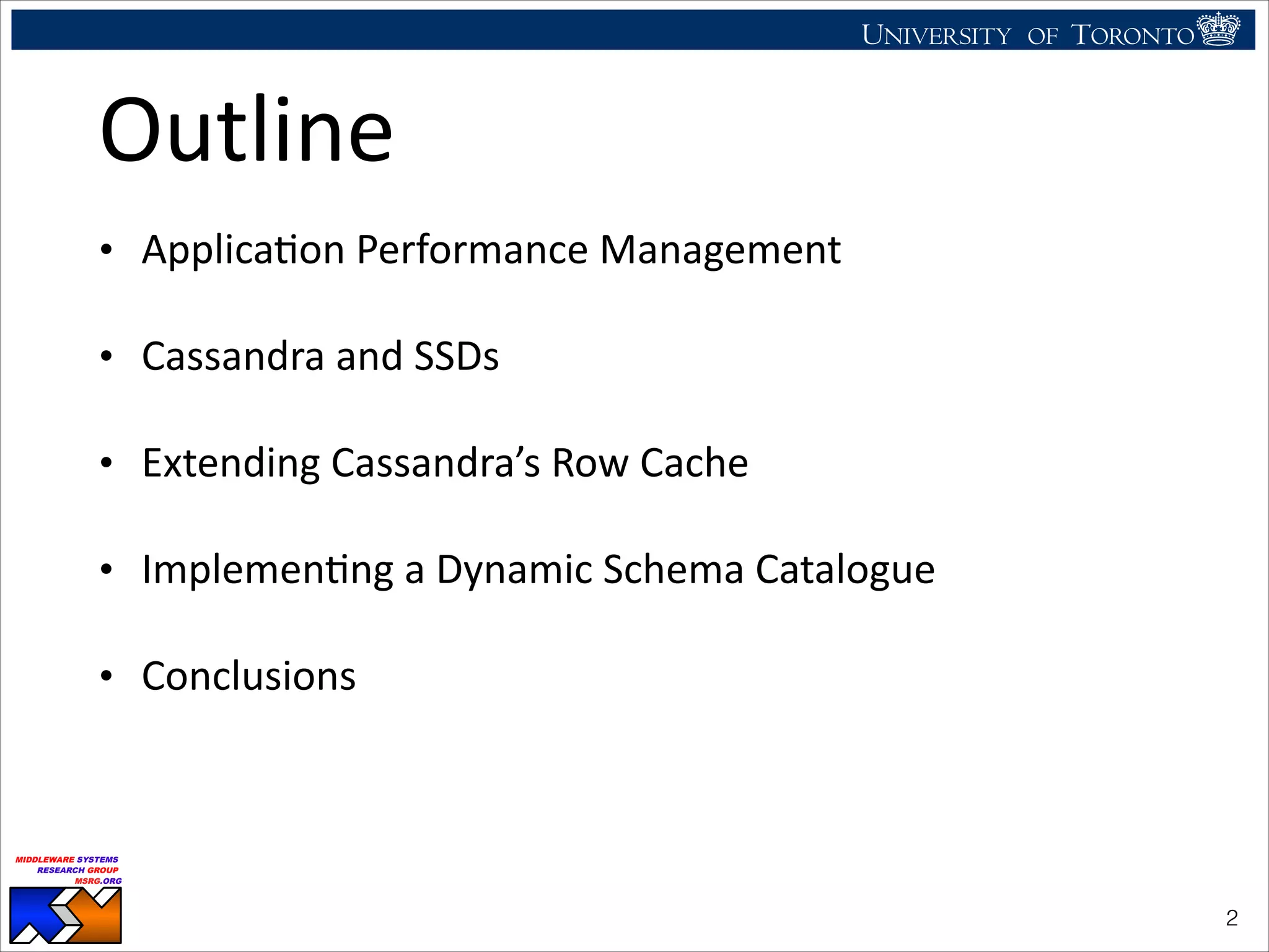 The document discusses the use of observability tools to enhance database management systems (DBMS), particularly focusing on Cassandra and its performance improvements when integrated with SSDs. It evaluates various configurations and metrics for application performance management, demonstrating how extending row cache onto SSD can significantly boost throughput and reduce latency. The findings suggest that while SSDs offer substantial performance benefits for data storage, careful configuration and management are necessary to optimize costs and lifespan.