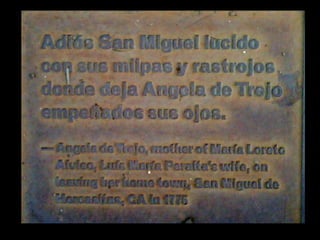 This document provides information about the Anza Trail, a historic route stretching 1,800 miles from Culiacán, Mexico to San Francisco, California. It details the trail's history and purpose of telling its story and protecting sites along the route. It also lists the three full-time staff members and over 30 partner organizations that work to support research, interpretation, and stewardship of the Anza Trail.