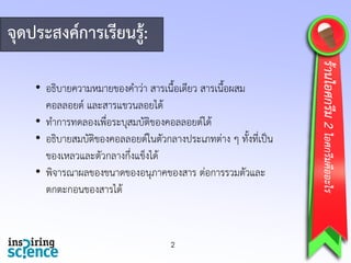 • ทาการทดลองเพื่อระบุสมบัติของคอลลอยด์ได้