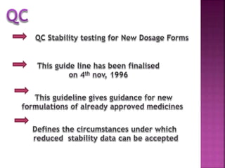 The document summarizes the International Council for Harmonisation of Technical Requirements for Pharmaceuticals for Human Use (ICH). ICH is a joint initiative between regulators and industry to establish and harmonize technical standards for pharmaceutical drug development and regulation. The ICH has guidelines on quality, safety, efficacy, and multidisciplinary topics. Some key achievements and guidelines discussed include standards for stability studies, impurities testing, risk-based pharmaceutical quality management, medical terminology standardization (MedDRA), common technical document format (CTD), and electronic data standards. Dates of finalization are provided for numerous ICH guidelines.