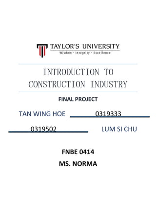 The document proposes constructing an event hall and café on a 30m x 30m plot of land within a university campus. The concept is to build a multipurpose event hall measuring 13.5m x 19.5m that can be used for parties, dining, and badminton. An adjacent café would provide food/drinks and a small library for studying. Site analysis found the location next to sports courts lacked rest areas. The proposal provides rationales for benefits and materials lists the estimated costs. Construction approval documents are also outlined.