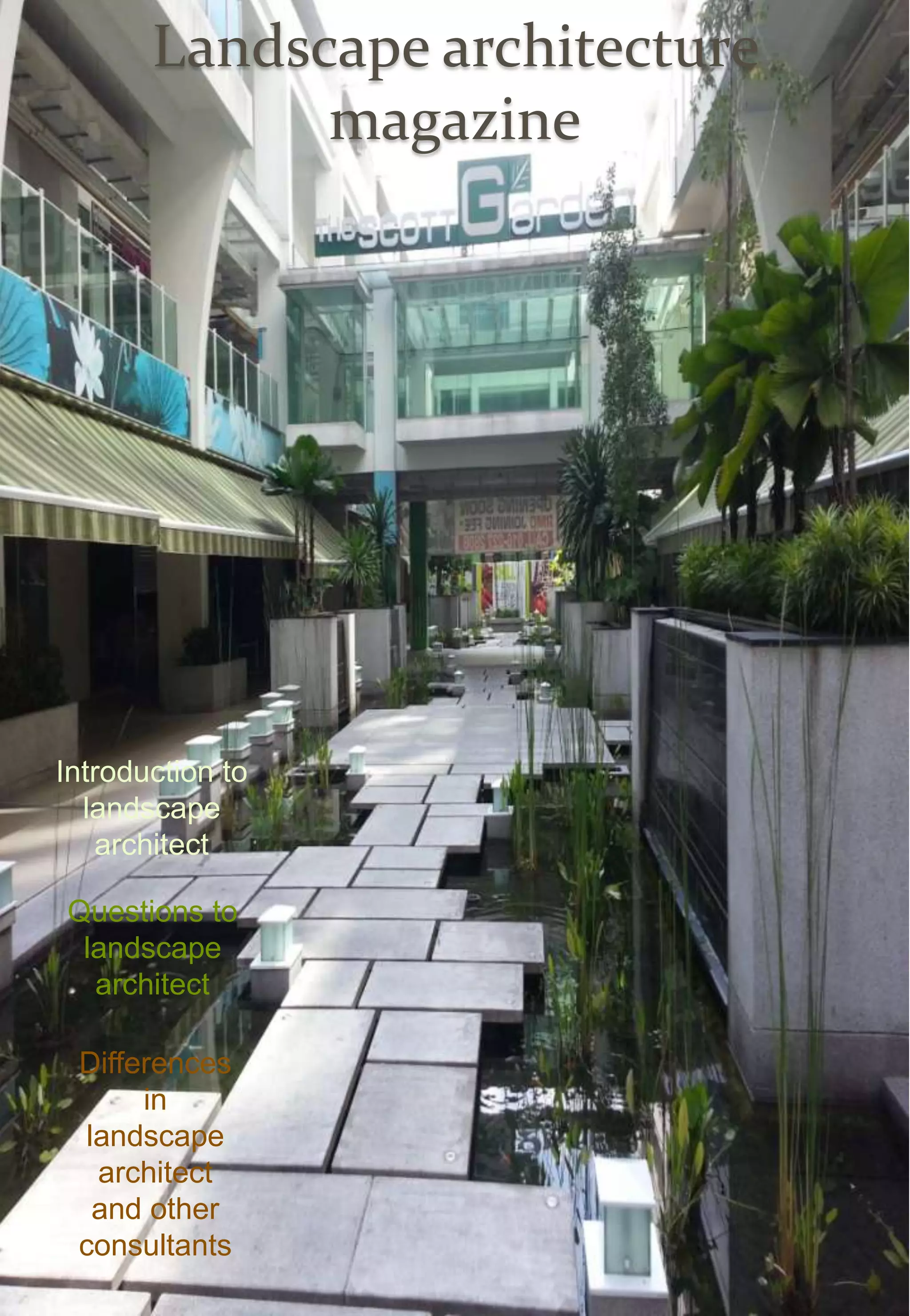 Landscape architects combine creativity and vision to design beautiful outdoor spaces. They must research plant and tree types and gain experience before designing landscapes. Landscape architects start work after a building is built to design the outdoor space according to local rules. They conceptualize a design, finalize it with clients, create construction drawings, and obtain approvals from authorities. Landscape architects specialize in landscape design and need expertise in plant species, site planning, and land use, whereas other consultants focus more on building design, structure, and materials.