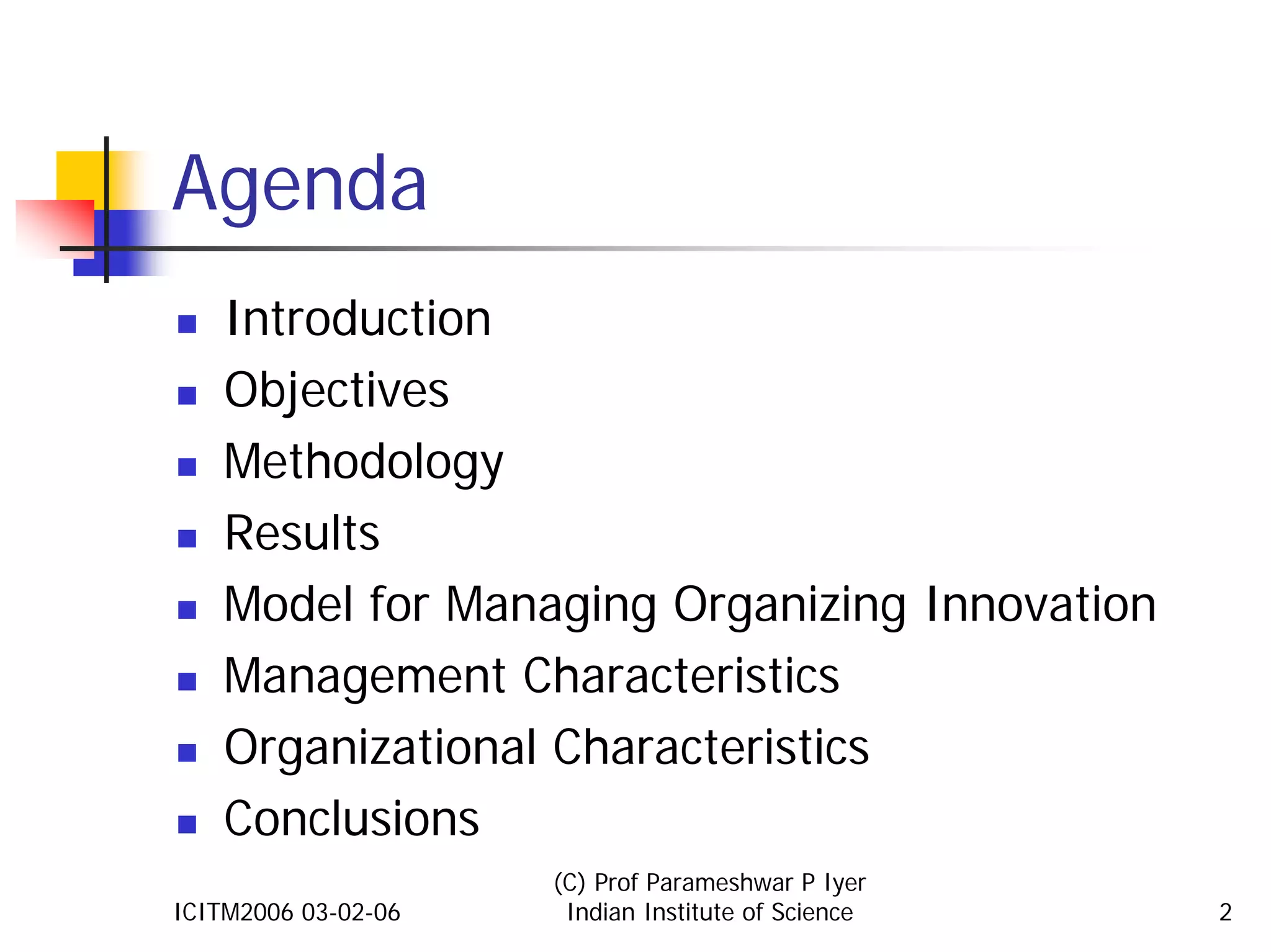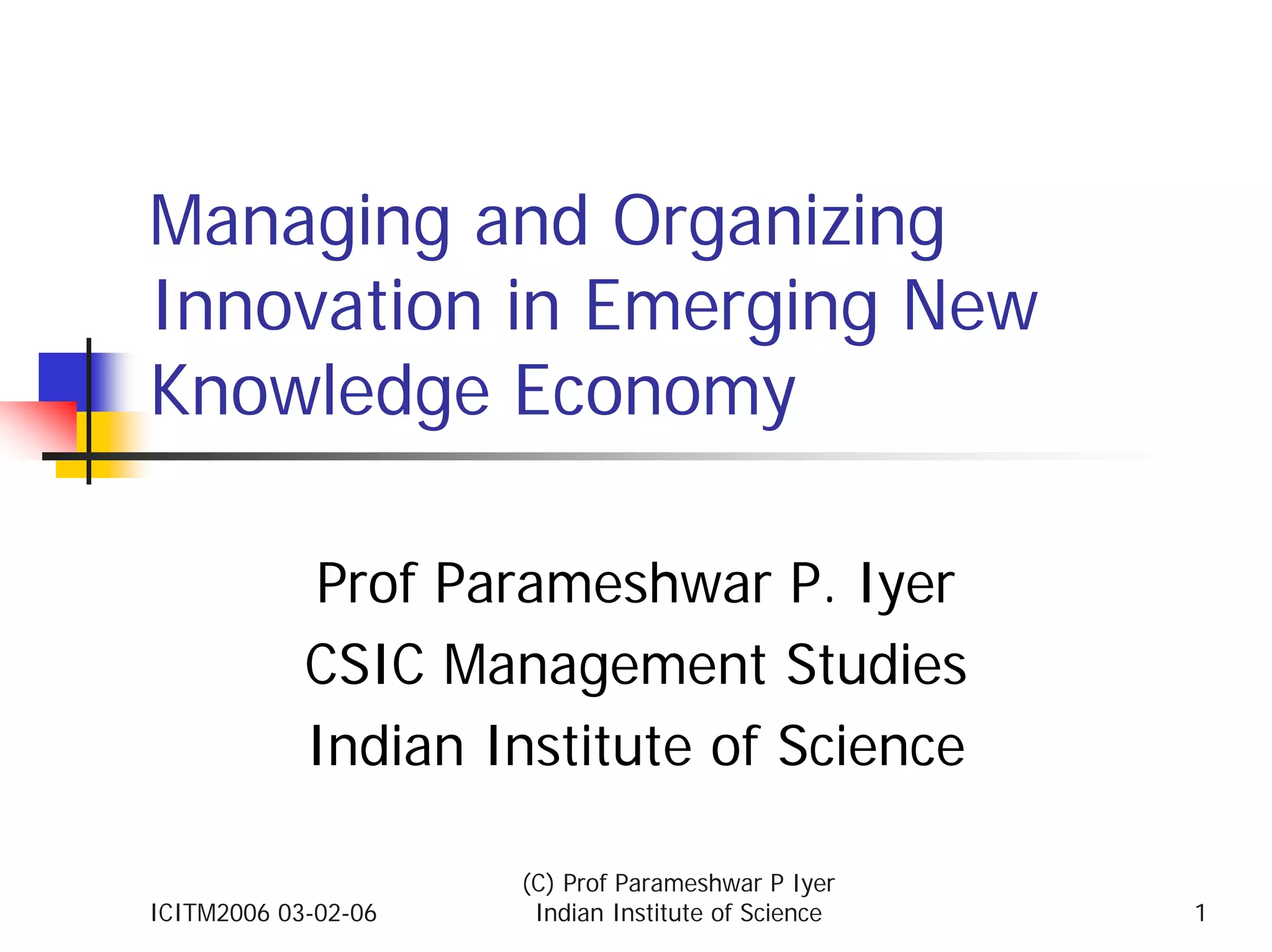 The document presents a model for managing and organizing innovation in the knowledge economy, emphasizing the importance of management characteristics like focus, mastery, intensity, and integrity. It outlines that organizational success in innovation relies on processes, relationships, commitment, and belonging. The conclusions highlight the necessity for both management and organizational levels to proactively adapt and manage innovation amidst increasing complexities.