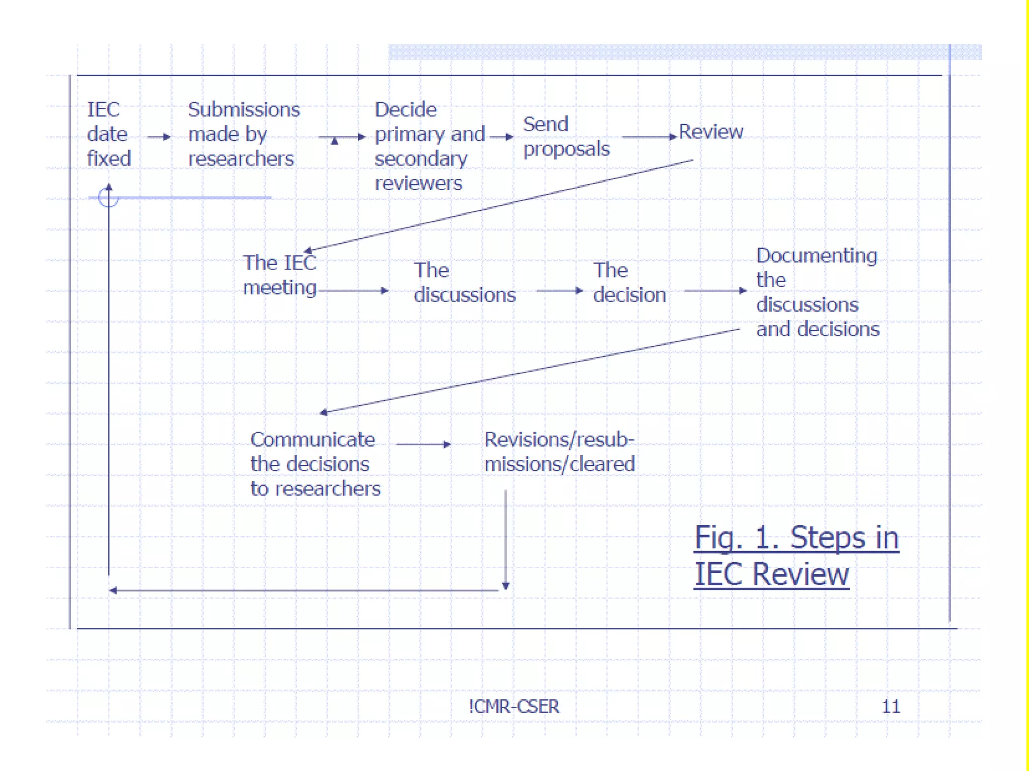 The document outlines the structure and responsibilities of the Institutional Ethics Committee (IEC) in India, which safeguards the rights and well-being of human subjects in biomedical research. It details the review procedures, meeting processes, and the composition of IEC members, emphasizing the importance of ethical evaluation and decision-making in research proposals. Objectives include understanding IEC structure, review processes, and member responsibilities to ensure ethical practices in research.
