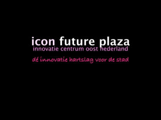 ICON Future Hub is dé beoogde hartslag voor innovatie in Oost Nederland volgens Martha Riemsma, Frank Hautvast en Peter Oosterwijk. Zij zijn de initiatiefnemers van het ambitieuze plan een fysiek open netwerk op te zetten in hartje Enschede. Een toegankelijk jaarprogramma gedraaid door 'hand-picked' kennisnomaden waarborgt een continue hartslag met grote aantrekkingskracht op professionals uit de regio.