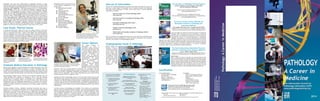 Pathologists have made significant contributions to medicine, including many Nobel Prize-winning discoveries. Pathology training in the US and Canada involves 3-4 years of residency, and pathologists can specialize in areas like anatomical pathology, clinical pathology, and various subspecialties. Pathologists work in various settings like community hospitals, medical schools, government agencies, and private companies.