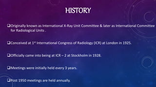 The ICRU Report 83 outlines standards for radiation therapy, focusing on the definitions and classifications of various treatment volumes, dose reporting, and methodologies for intensity-modulated radiation therapy (IMRT). It emphasizes the importance of accurate dose delivery, proper delineation of volumes, and the parameters needed to optimize treatment while minimizing risks to organs at risk. The report also establishes guidelines for objective functions and dose-volume histograms to ensure uniformity and effectiveness in radiotherapy practices.