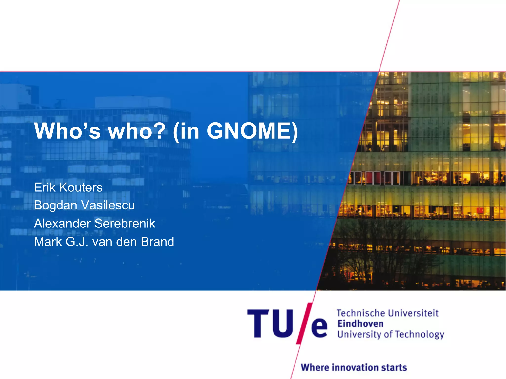 The document discusses identity merging algorithms in the context of software development, specifically focusing on how multiple aliases for a single individual can complicate data analysis. It emphasizes the challenges presented by noisy data and evaluates the effectiveness of using Latent Semantic Analysis (LSA) in merging similar aliases. Empirical results show varying performance measures with LSA being comparable to state-of-the-art methods in this domain.