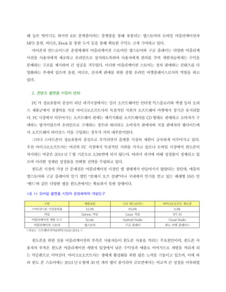 세계 스마트폰 시장은 2008년 이후 연평균 47.9%의 폭발적인 고속 성장을 거듭하여 2013년 9억 7,000만 대에 이르게 되었다. 스마트폰 시장의 활성화와 태블릿 시장의 급성장과는 반대로 개인용 컴퓨터 시장은 2012년과 2013년에 연속하여 하락세를 보였으며, 2014년 4분기의 경우에도 전년대비 2.4% 감소하였다. 인터넷 접속을 통한 검색, 에메일 송수신과 메시지 전송과 같은 단순한 일에서부터 금융업무, 명함관리, 전자상거래 기능 등의 복잡한 업무까지 스마트폰이 대신하면서 개인용 컴퓨터(PC)의 활용도가 축소되고 있으며, 사진촬영 및 SNS 활용 측면에서도 스마트폰과 태블릿이 PC에 비교하여 많은 장점을 가지고 있으므로 이러한 추세는 지속될 전망이다
