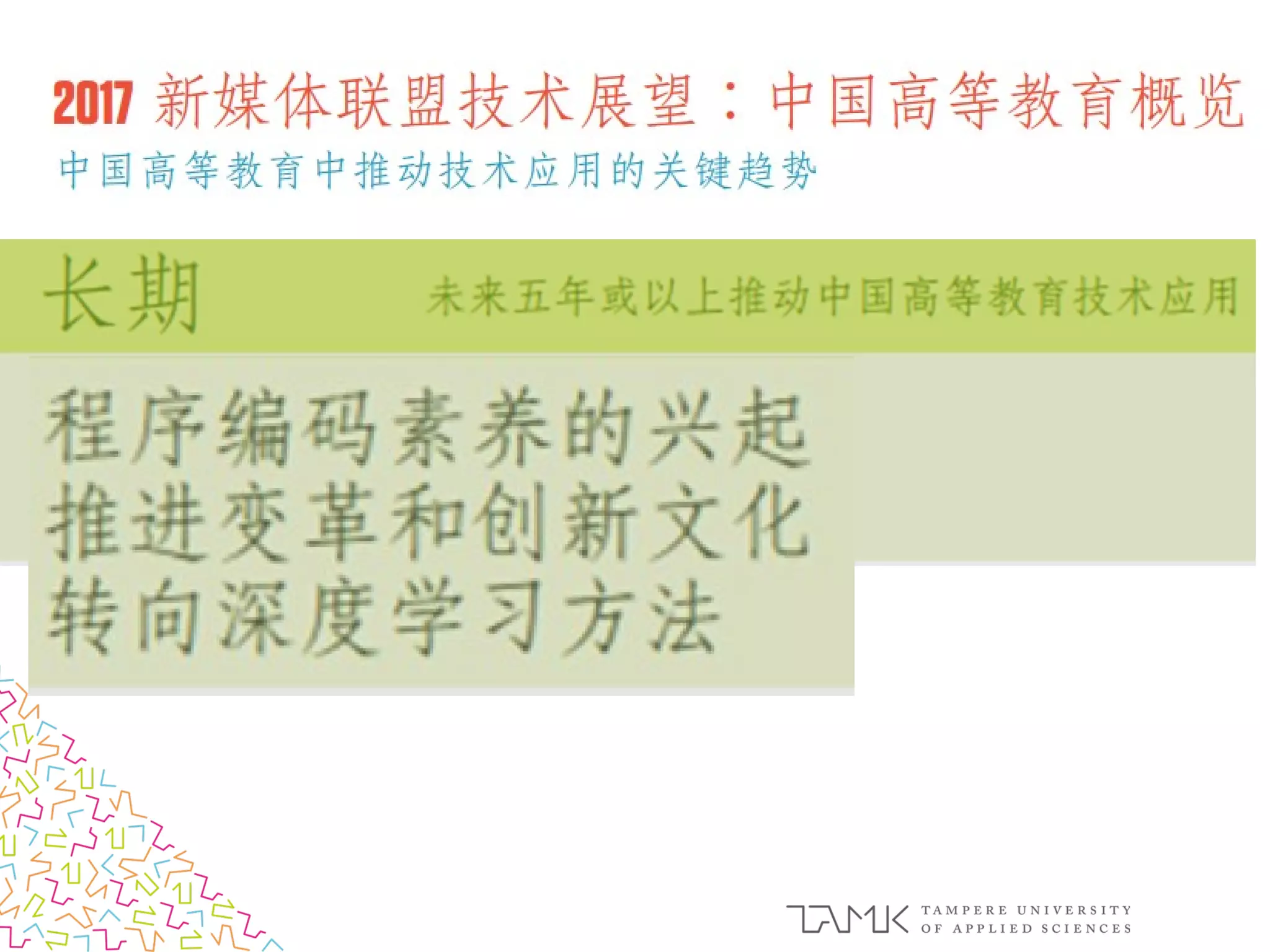 - The document discusses ICT and digitalization in teaching and learning. It provides an overview of trends in technology for Chinese higher education such as blended learning, flipped learning, mobile learning, and the use of social media, virtual reality, and robotics in education.