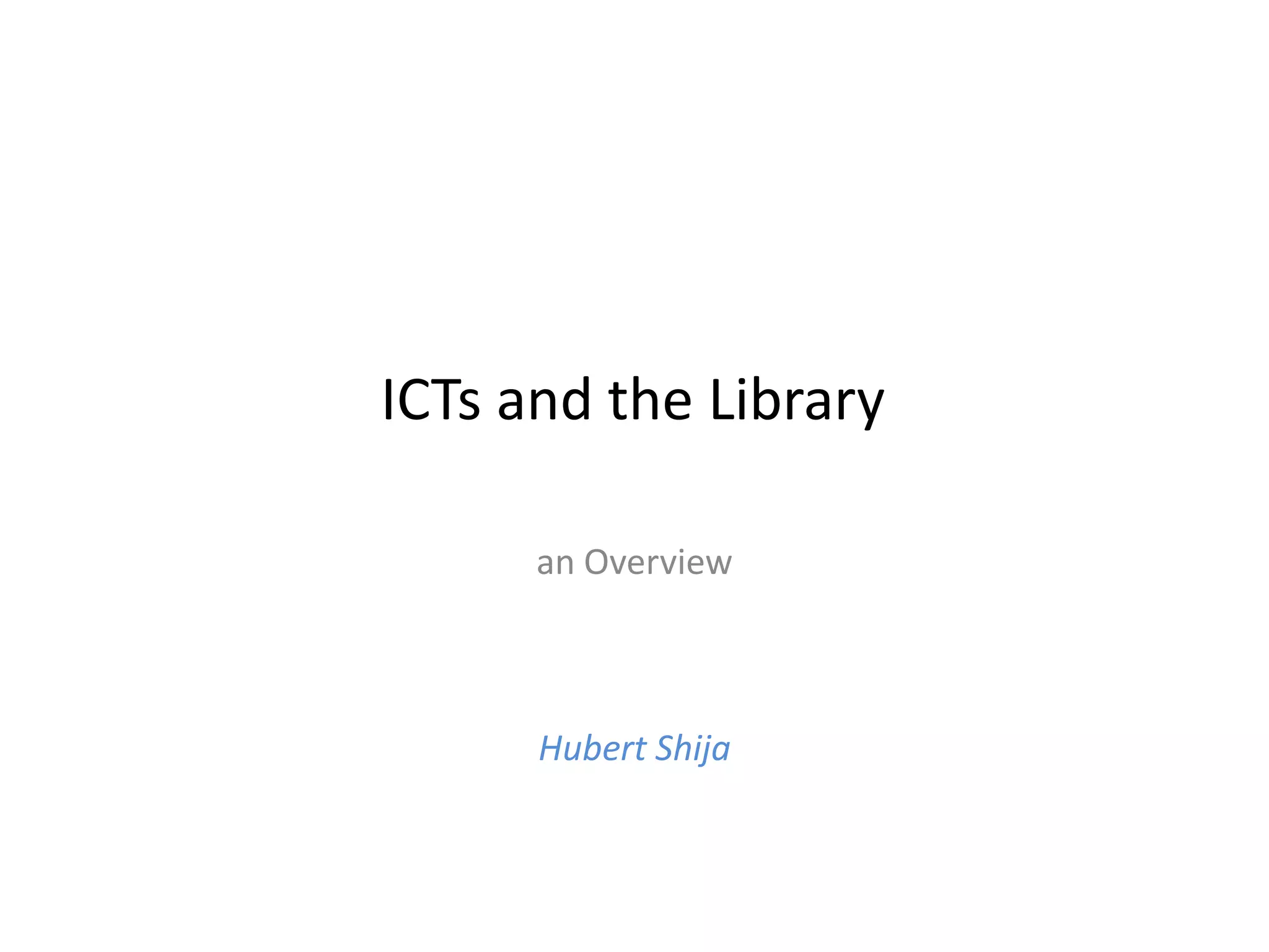 The document discusses how information and communication technologies (ICTs) have transformed information formats, storage, and communication media, impacting library services. ICTs bring advantages like easier information manipulation and access, but also challenges like digital divides in access and skills. The conclusion calls for ICT stakeholders to improve the environment, access, use of and skills in technologies.