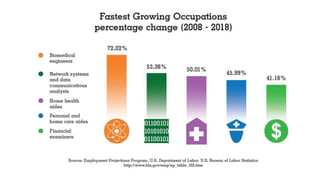 The document outlines career paths and trends in the ICT sector in Libya, focusing on local and global technology advancements like virtualization, e-commerce, IoT, and AI. It emphasizes the importance of various certifications and programming skills, such as networking, web development, and app development for both Android and iOS. The document also provides contact information for further inquiries.