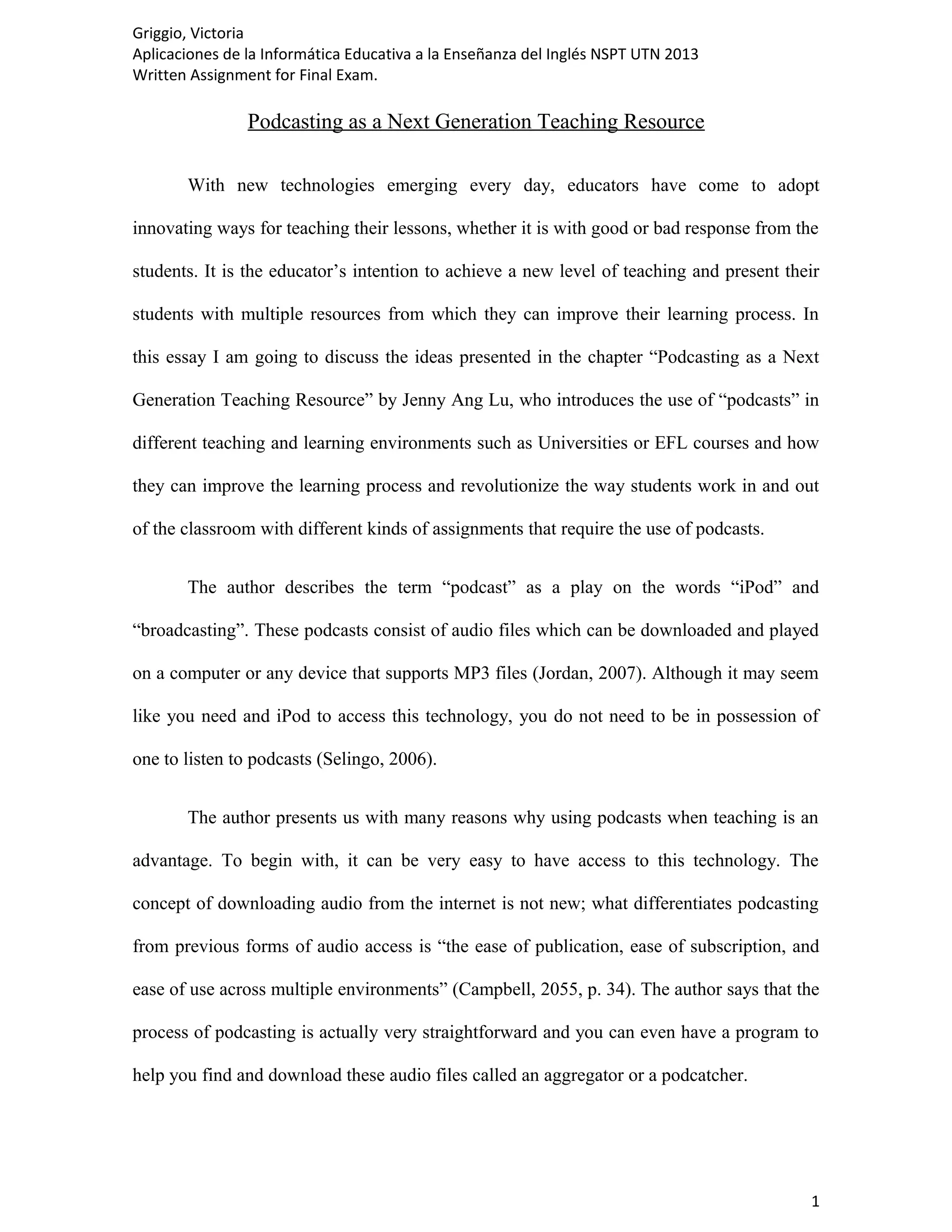 The document discusses the transformative role of podcasting in English language education, highlighting its accessibility and the variety of resources available for learners. It presents both the benefits and challenges of using podcasts in teaching, emphasizing their potential to enhance language immersion and engagement among students. Despite some drawbacks, such as inconsistent content quality, podcasts are portrayed as a valuable tool for modern educational practices.
