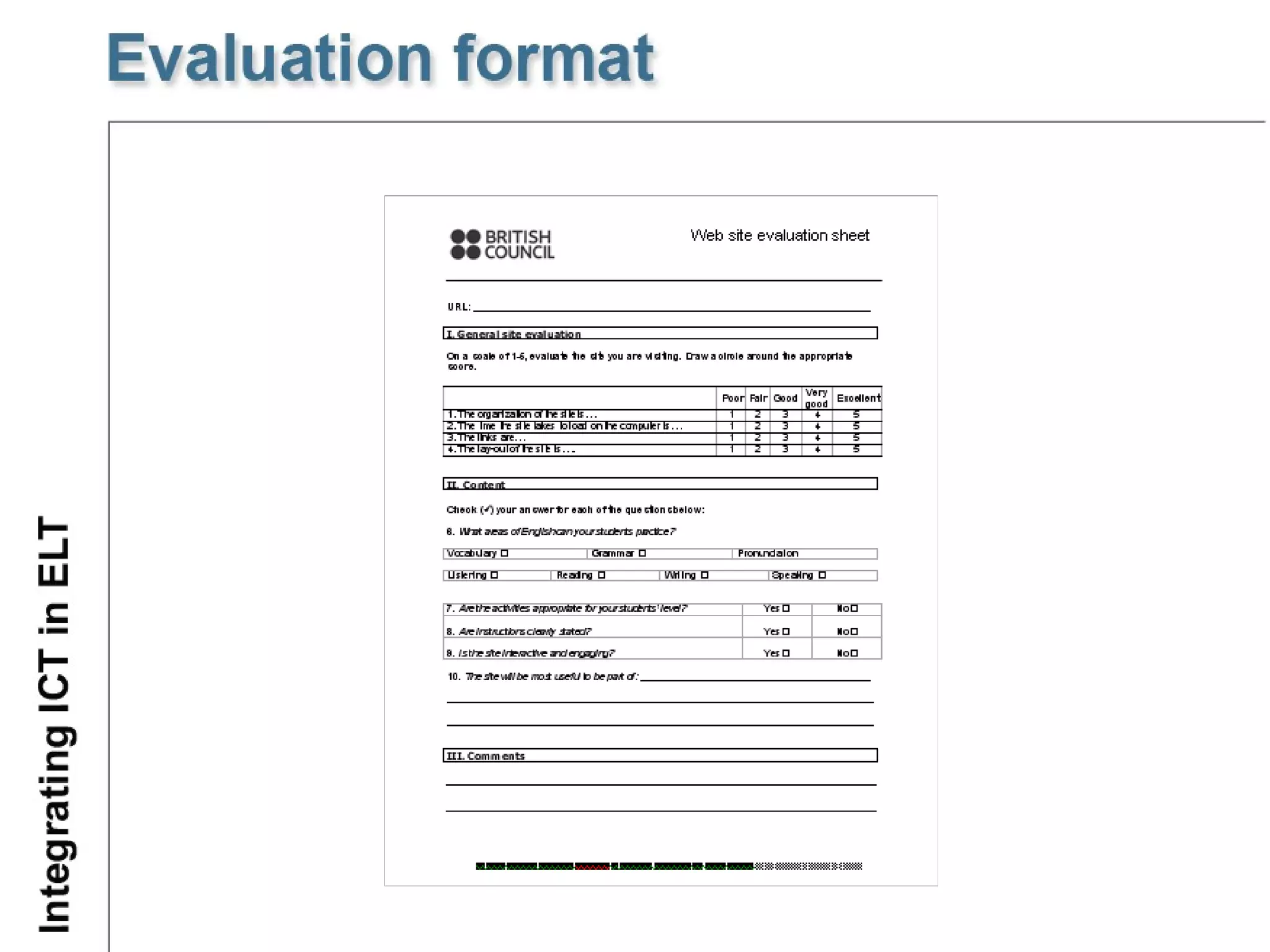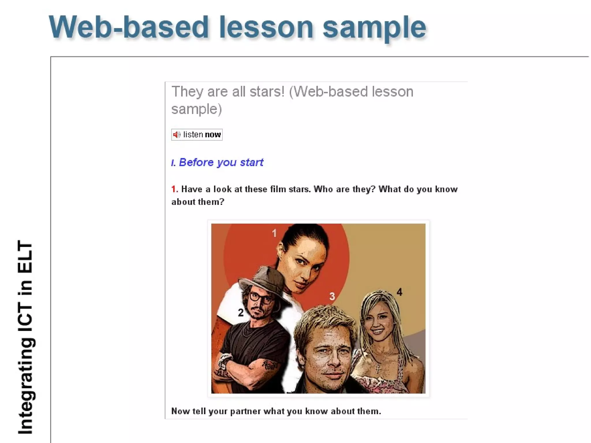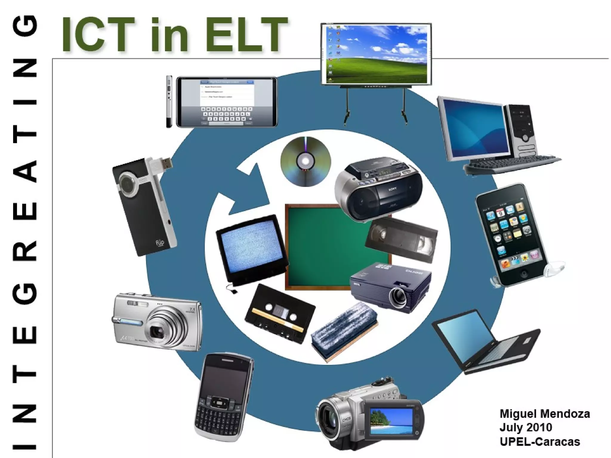 This document discusses integrating technology into English language teaching. It defines CALL, ICT, and TELL as computer-assisted language learning, information and communications technology, and technology-enhanced language learning. The benefits of ICT for ELT include motivation, interaction, and access to authentic materials. When integrating technology, teachers should consider students' needs, careful lesson planning, and technical issues. Web 2.0 tools and task-based activities can help develop language skills while mirroring students' online experiences.