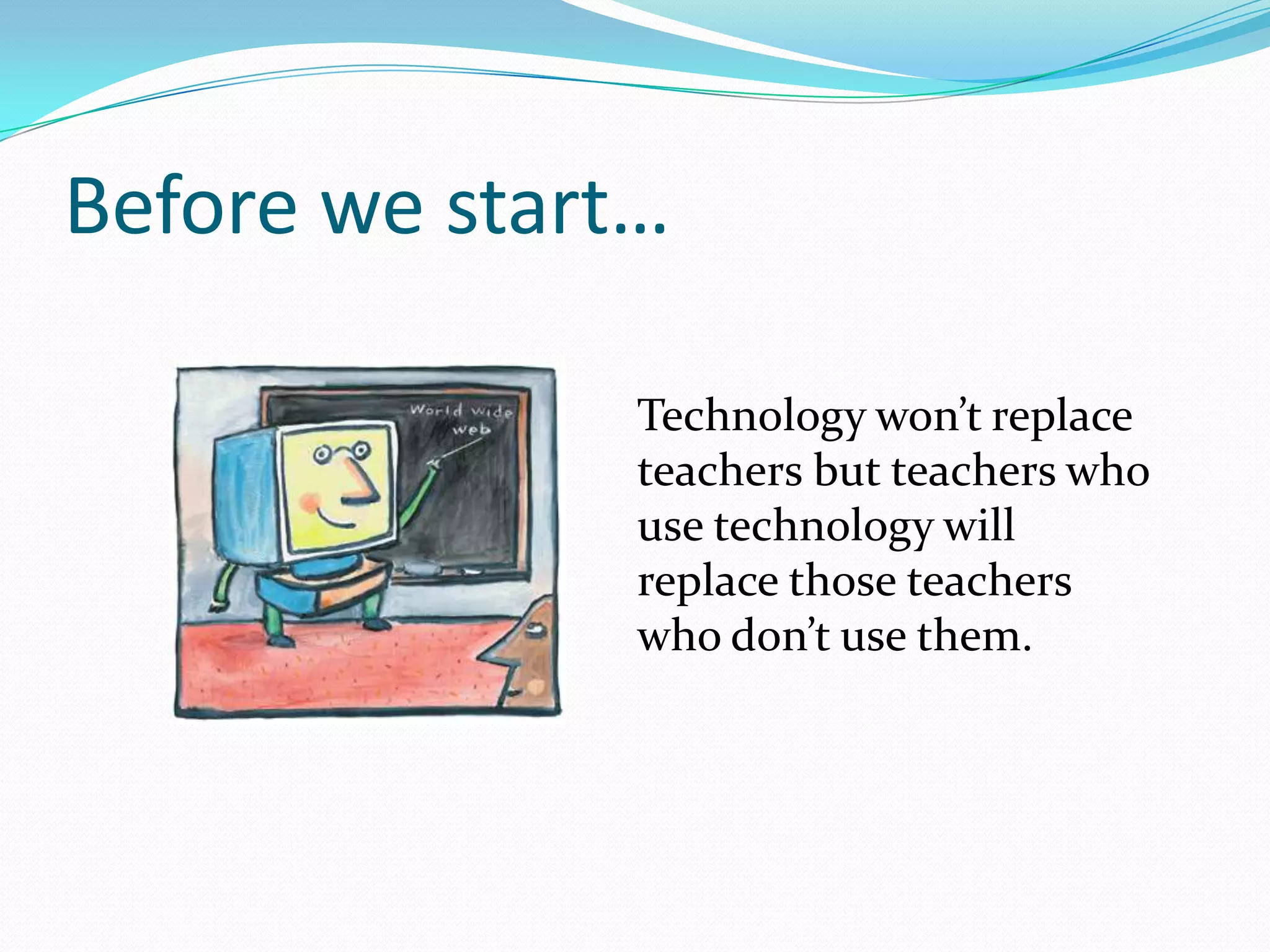 The document discusses the importance and benefits of integrating information and communication technologies (ICT) into language teaching. It provides 3 key reasons why ICT should be used: 1) Today's students are "digital natives" fluent in technology; 2) Using technology keeps teachers up-to-date and makes lessons more engaging; 3) Technology allows learning to happen anywhere, anytime. The document then describes over 10 specific tools that can be used in the classroom, including search engines, Google Docs, online videos, photo sharing websites, and social networks. It provides examples of how each tool can be utilized and the learning benefits. Overall, the document advocates for the strategic use of technology to improve language instruction