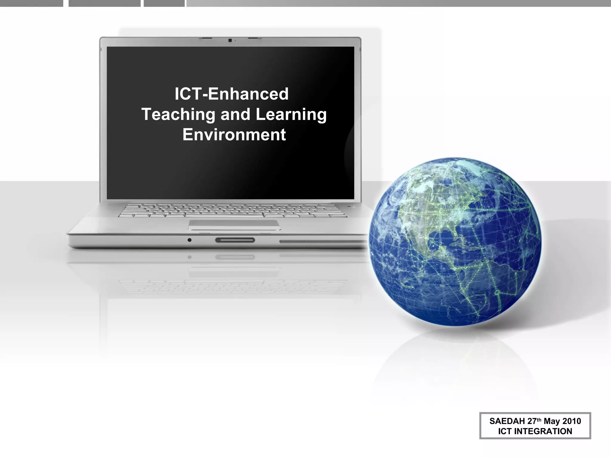 The document discusses using information and communication technologies (ICT) to enhance teaching and learning. It covers defining Web 2.0 and how it has changed knowledge sharing. Various e-learning tools are presented, including options for collaboration, productivity, multimedia creation, organization, and social interaction. Challenges of implementing these tools in pedagogical practices are also addressed.