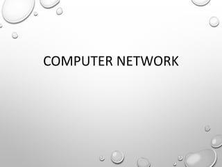 A network allows computers to share resources like files, printers and internet connections. It connects devices using cables, wireless or other connections. A network has servers that provide services to client computers. The internet is a global network that connects millions of devices using common protocols like TCP/IP. TCP/IP breaks data into packets that include the destination and source addresses. Networks require hardware like switches, routers and firewalls to function properly. IP addresses and subnet masks are used to identify devices and determine if they are local or remote.