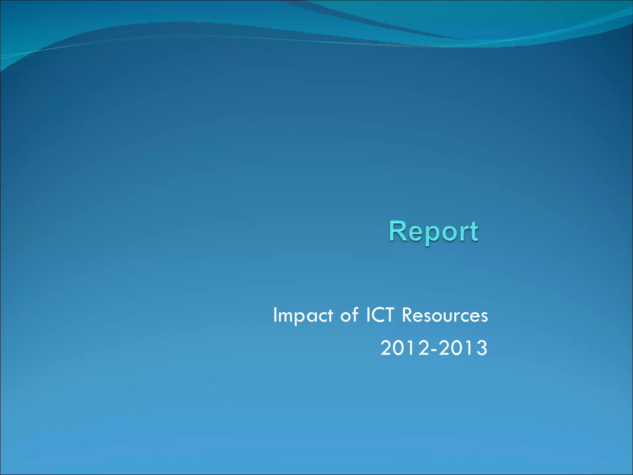 This document discusses the integration of ICT resources in education from 2012-2013. It describes how teachers are at different stages of adoption - from entrance to creation stages. It notes challenges teachers face at each stage and comparisons between stages. The document also discusses ICT apprehension, appropriate lesson planning, the changing role of teachers, motivating teachers, technical support provided, and feedback from administration on areas discussed. The overall summary is that the document examines the integration of ICT in education by analyzing teacher adoption stages and challenges, and seeking feedback to further support teachers.