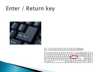 This document provides an overview of the internal components of a computer and their functions. It discusses the central processing unit (CPU) as the brain of the computer, random access memory (RAM) for short-term use by the CPU, the hard drive for long-term storage, the video/graphics card for displaying images, audio/sound card for sound, USB card for connecting peripherals, and the power supply unit. It notes that laptop components are smaller versions of the same parts wired together on a motherboard. The document also previews topics to be covered in future sessions, including saving files, using Windows, and working with sound and video.