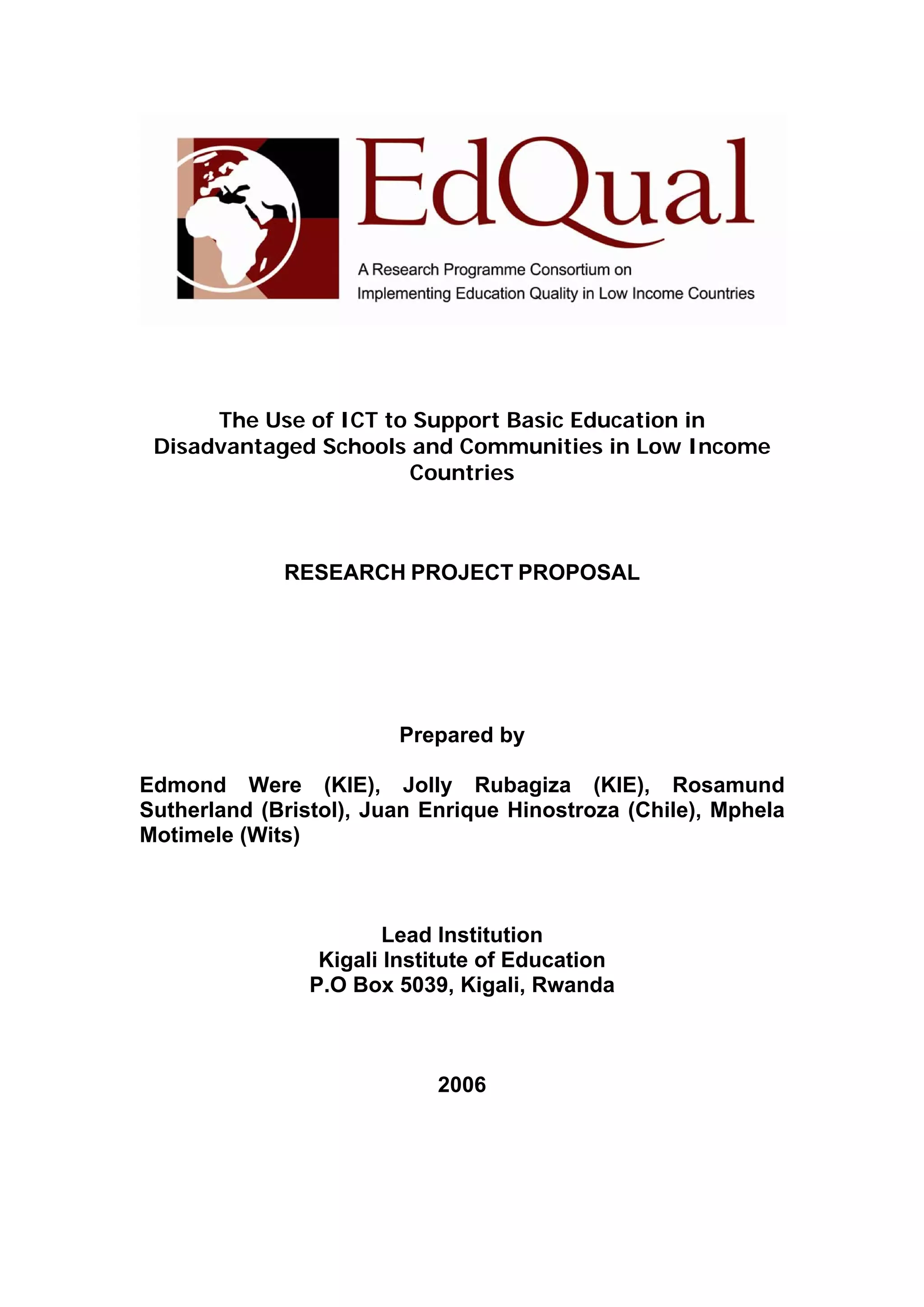 This research project proposes to study the use of information and communication technologies (ICT) to support teaching and learning in disadvantaged schools and communities in Rwanda and South Africa. The project aims to develop models for effective ICT introduction and use at the basic education level. It will focus on supporting teacher development and capacity building to effectively integrate ICT into teaching mathematics and science. It also aims to study how ICT can be used to engage and support community development efforts. The project seeks to answer questions about current ICT infrastructure and skills, how ICT can support teaching and learning as well as teacher professional development, and how ICT can help close gender divides in mathematics and science education. Expected outcomes include the development of teaching models using