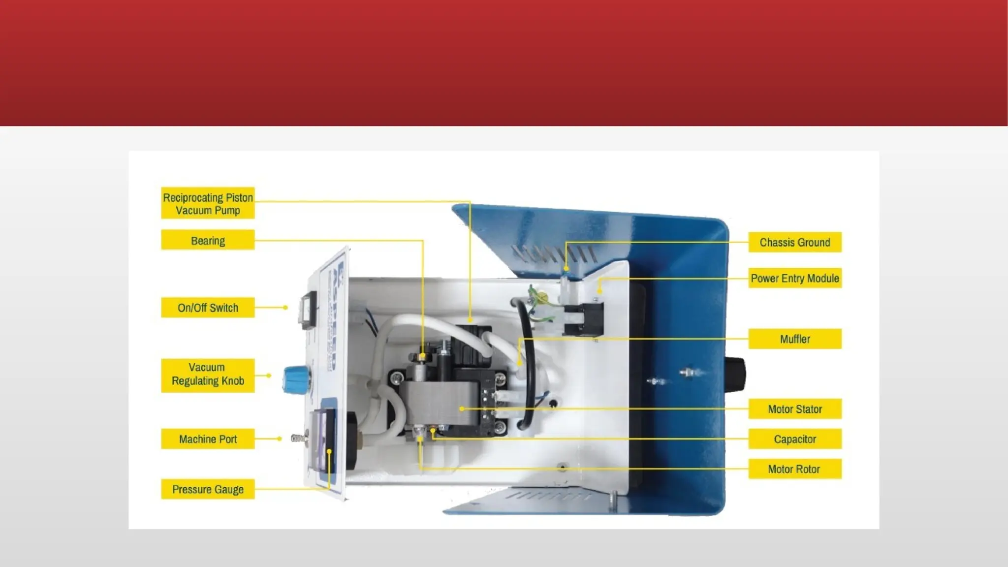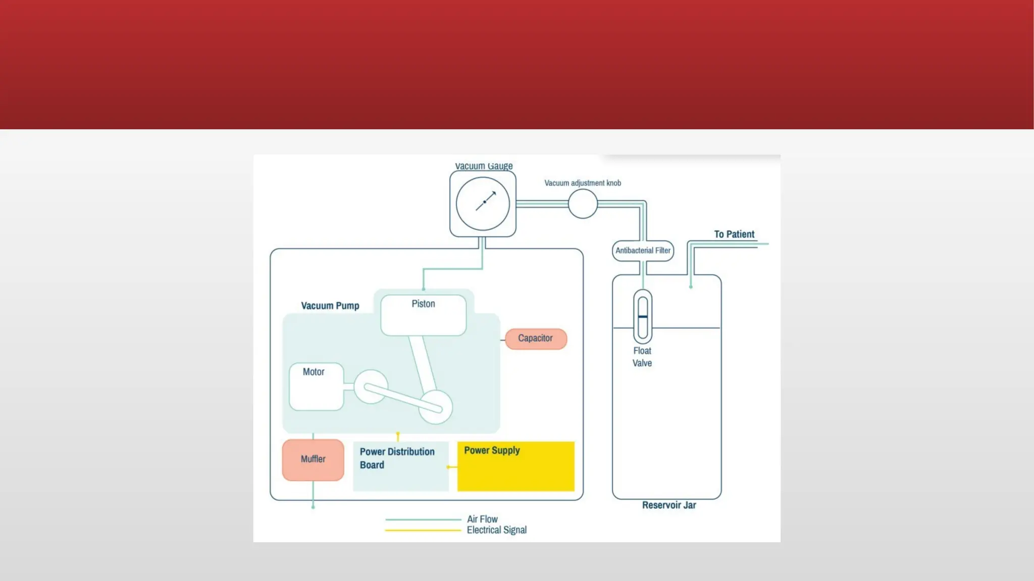 The document provides a comprehensive overview of suction machines used in medical settings, detailing their introduction, uses, components, and maintenance. It explains the working principle and various parts of the machine, including the vacuum pump, collection reservoir, and bacterial filter. Additionally, it covers planned preventive maintenance and troubleshooting tips for common issues encountered with the suction pump.