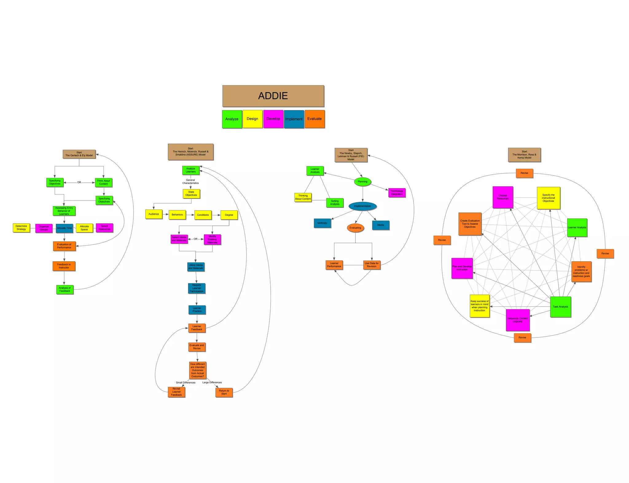 The document summarizes four instructional design models: