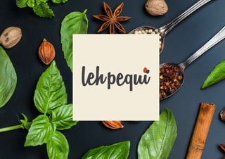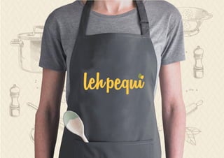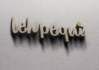 This document outlines the visual identity for Leh Pequi, describing its creative concept as rustic, healthy, and simple. It specifies the font styles Univers Condensed and Langdon for the brand, along with color palettes and patterns. The document also includes branding elements like signatures and logos.