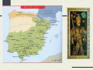 2. ESPLENDOR DEAL-ANDALUS E ORIXE REINOS CRISTIÁNS. a) Fases esplendor al-Andalus. Invasión musulmana Hispania visigoda = Al-Andalus (711-1031). Fases: a) Emirato dependente de Damasco (711-756): al-Andalus pasou a formar parte do califato omeia con capital en Damasco. b) Emirato independente (756-929): en Oriente próximo os abasís fanse co poder aniquilando aos omeias (Califato abasí capital = Bagdad). Un supervivinte da familia real (Abd al-Rahman I) chegou fuxindo a al-Andalus. Co apoio da nobreza local proclámase emir (soberano) Emirato independente de Córdoba.