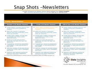 The document summarizes the services provided by Precision Research and Consulting Private Limited, which operates iData Insights. It conducts primary and secondary marketing research to help companies improve their products and services based on customer desires. It provides actionable recommendations and expertise to help clients succeed now and in the future. The team of research analysts creates reports, newsletters, magazines and databases on trends in the energy sector. Their market intelligence studies provide specific insights to help customers achieve their goals.
