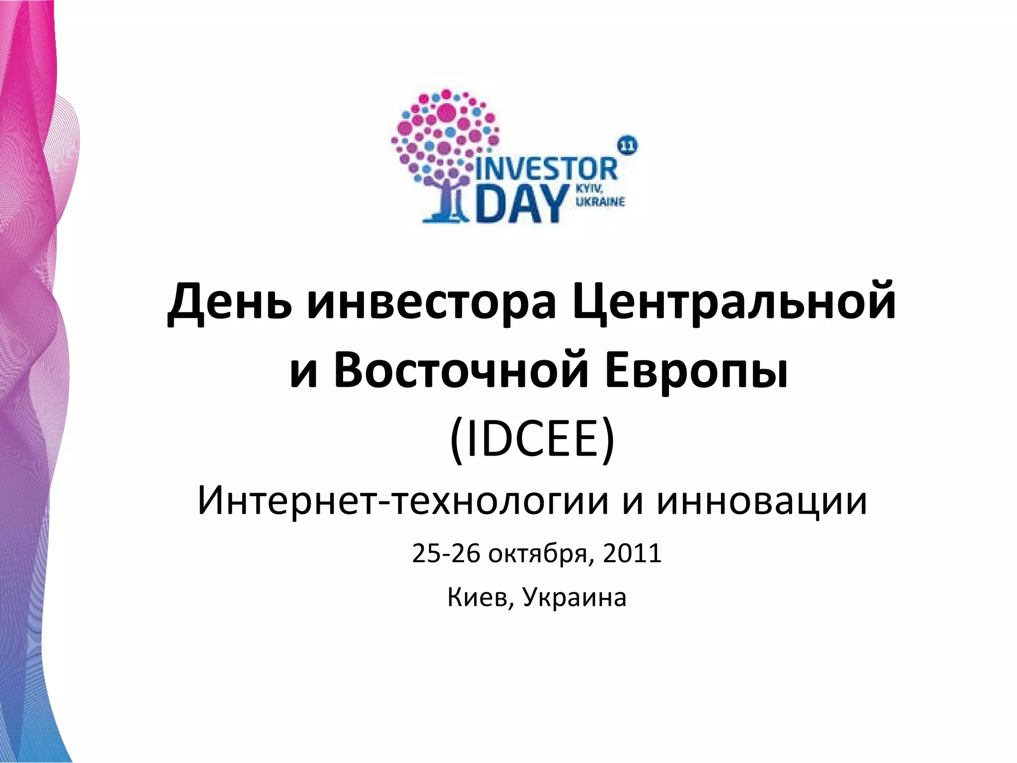 Конференция IDCEE 2011, проходящая 25-26 октября в Киеве, направлена на поддержку интернет-предпринимательства и венчурного инвестирования в Центральной и Восточной Европе, предоставляя стартапам платформу для презентации своих проектов. Участники смогут узнать от мировых экспертов и принять участие в конкурсе стартапов, что способствует обмену опытом и установлению деловых контактов. В мероприятии ожидается участие ведущих венчурных фондов и успешных предпринимателей, что подчеркнет важность IDCEE в регионе.