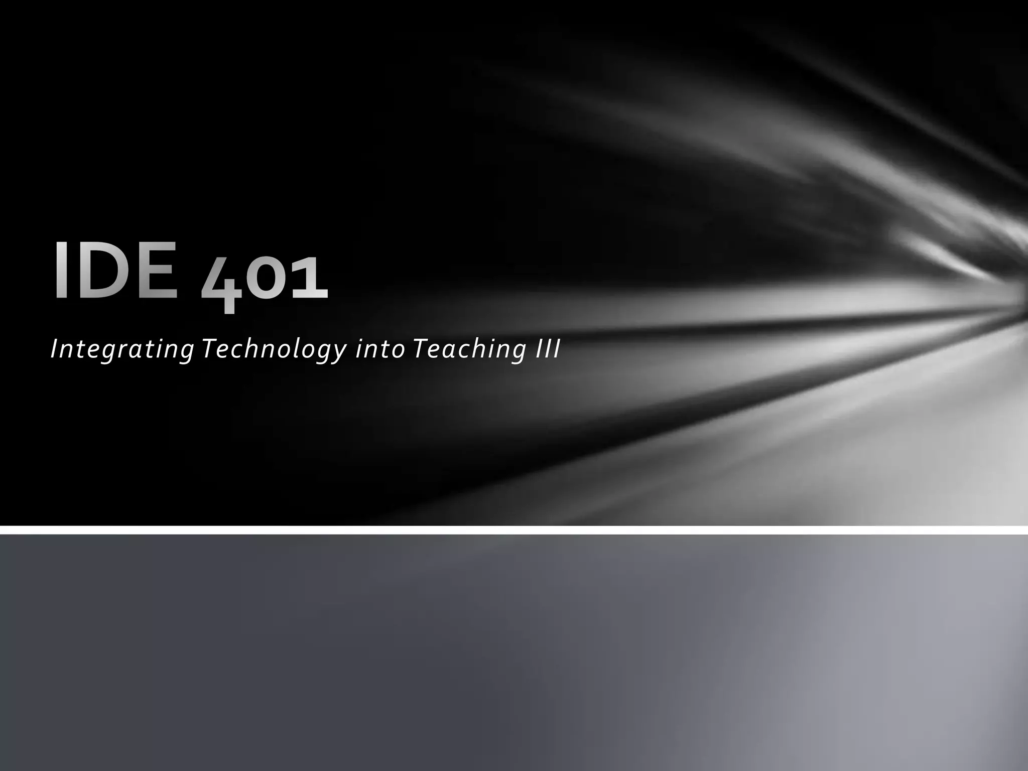 1. The document outlines an upcoming class on integrating technology into teaching. It includes a schedule, reading discussion, and assignments.