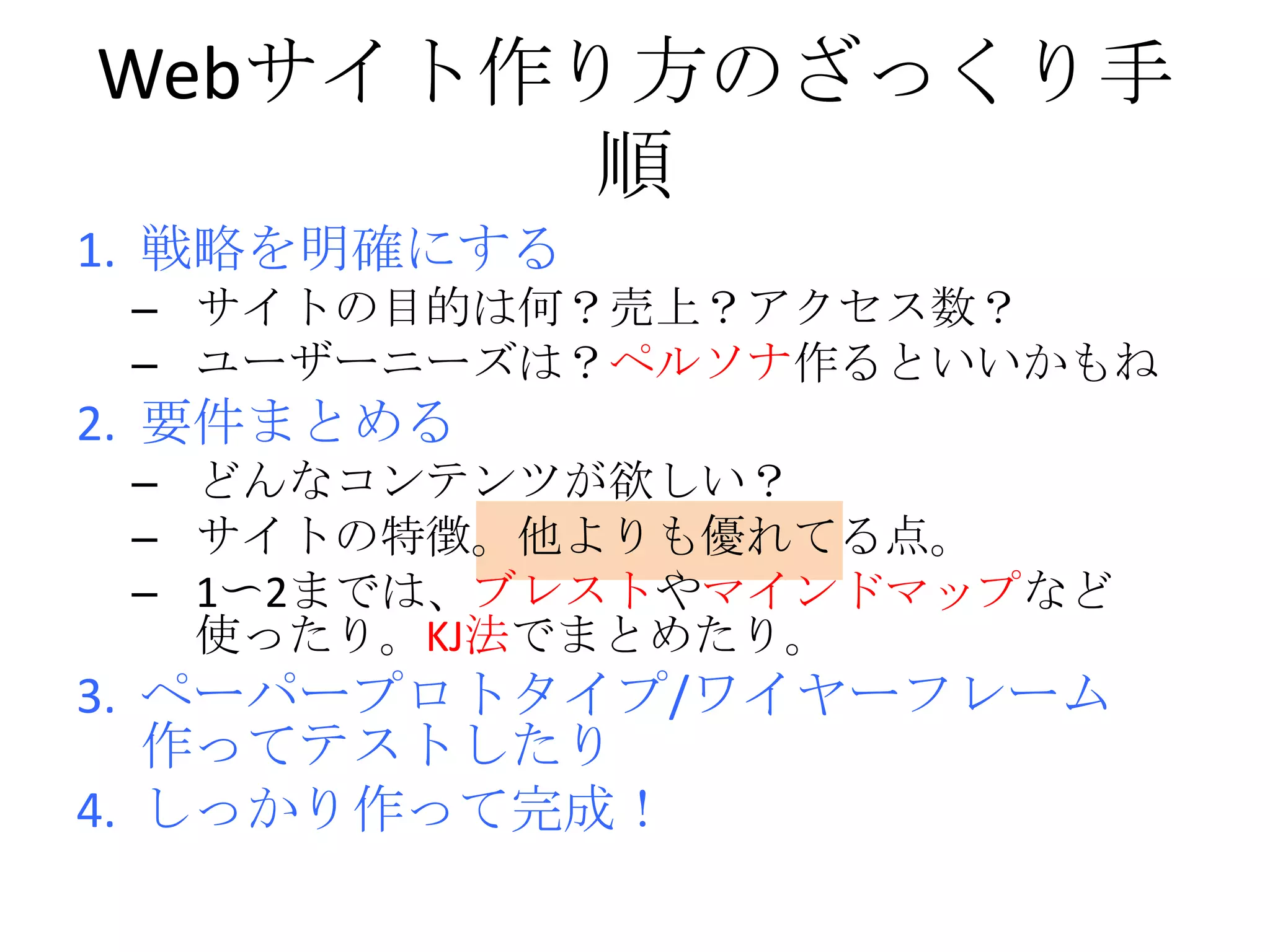 – 1〜2までは、ブレストやマインドマップなど