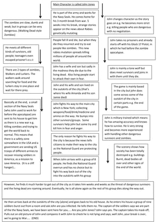 1) John Jones is a former Navy SEAL on break when a zombie outbreak occurs, killing his wife and son.