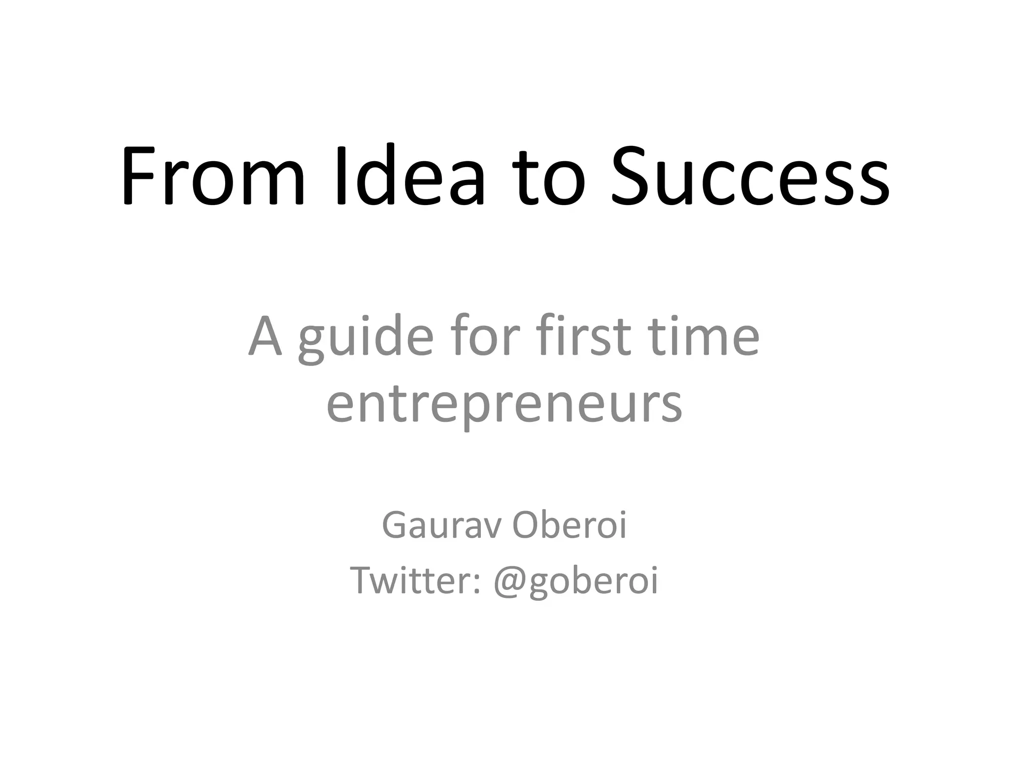 The document provides a comprehensive guide for first-time entrepreneurs on how to achieve a successful exit by evaluating ideas, building market-fit products, and growing businesses. It is structured into three main stages: evaluating the idea, building a product that people want, and developing marketing strategies focused on scalable customer acquisition. Key insights include the importance of reducing uncertainty, validating assumptions, and maintaining a lean approach during the startup phases.