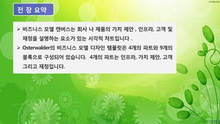 Osterwalder의 비즈니스 모델 디자인 템플릿은 4개의 파트와 9개의