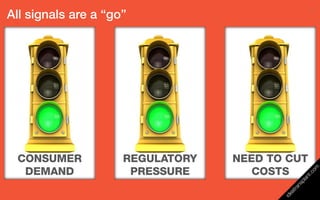 The document discusses regulatory confusion in the industry with more rules, uncertainty, and enforcement being introduced. It also discusses being bored with the same approaches that have been tried before and finding some bullet points listing factors like pricing, geography, people, marketing, cost, and luck. The document advises looking before signing any deals.