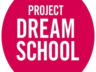 This document describes a dream school that abandons traditional classrooms and focuses on collaboration, creativity, and community involvement. Students would apply their skills to innovative projects rather than traditional download-style learning. The school would provide co-working spaces and resources for the community. Teachers would facilitate ideas rather than lecture. The ideal location would be a renovated 12th century castle providing classrooms, labs, arts facilities and student housing in a dramatic coastal setting. Small class sizes of 20 students maximum and a dedicated, qualified teaching staff are also described as ideals.