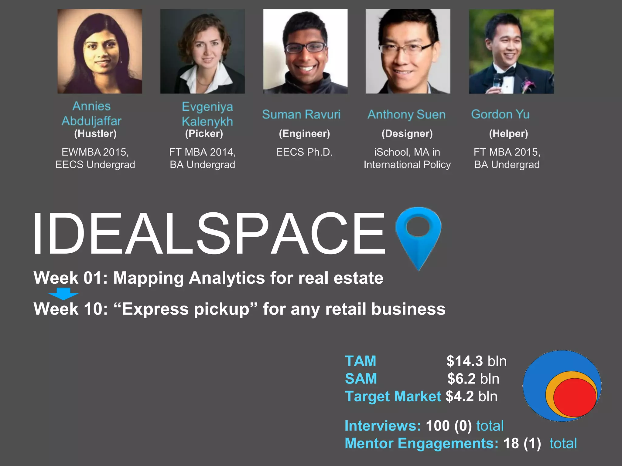 Express Pickup is a mobile app that allows individuals to order ahead from local retailers for curbside pickup. The business aims to onboard 100 retailers and acquire 300,000 individual customers by year 3. Key activities include maintaining the mobile interface, customer support, and expanding partnerships. The target market size is $4.2 billion and net income in year 3 is projected to be $2.2 million. An investment of $3.5 million is needed to achieve these goals.
