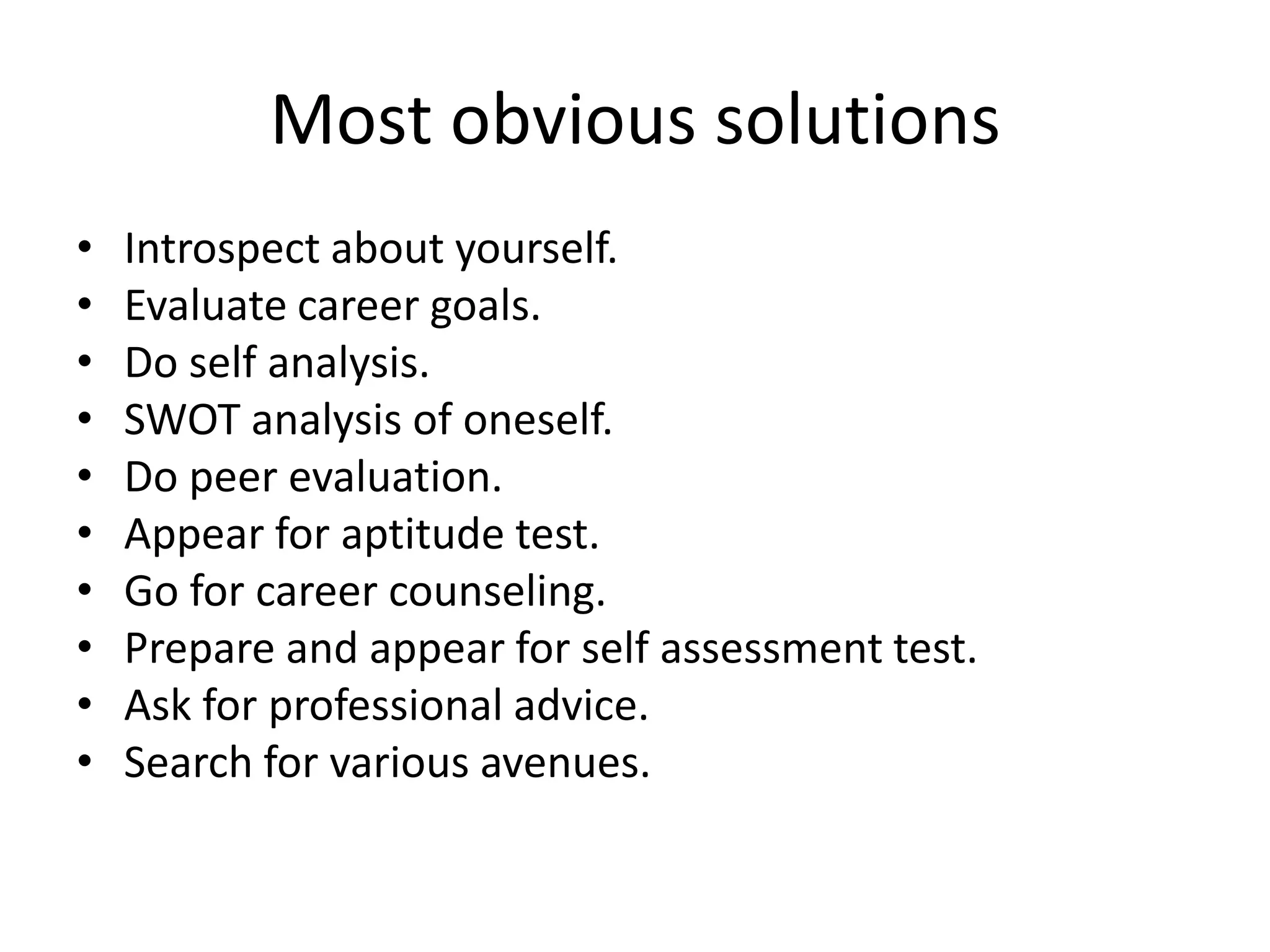 The document discusses various ideas for discovering one's self, including introspection, career counseling, and self-assessments. The most practical idea is online networking with professionals to get an outside perspective and understand industry expectations. The most disruptive idea is participating in expensive corporate training programs. The most favorite idea, though unlikely, is being able to read people's thoughts to truly understand them and oneself.
