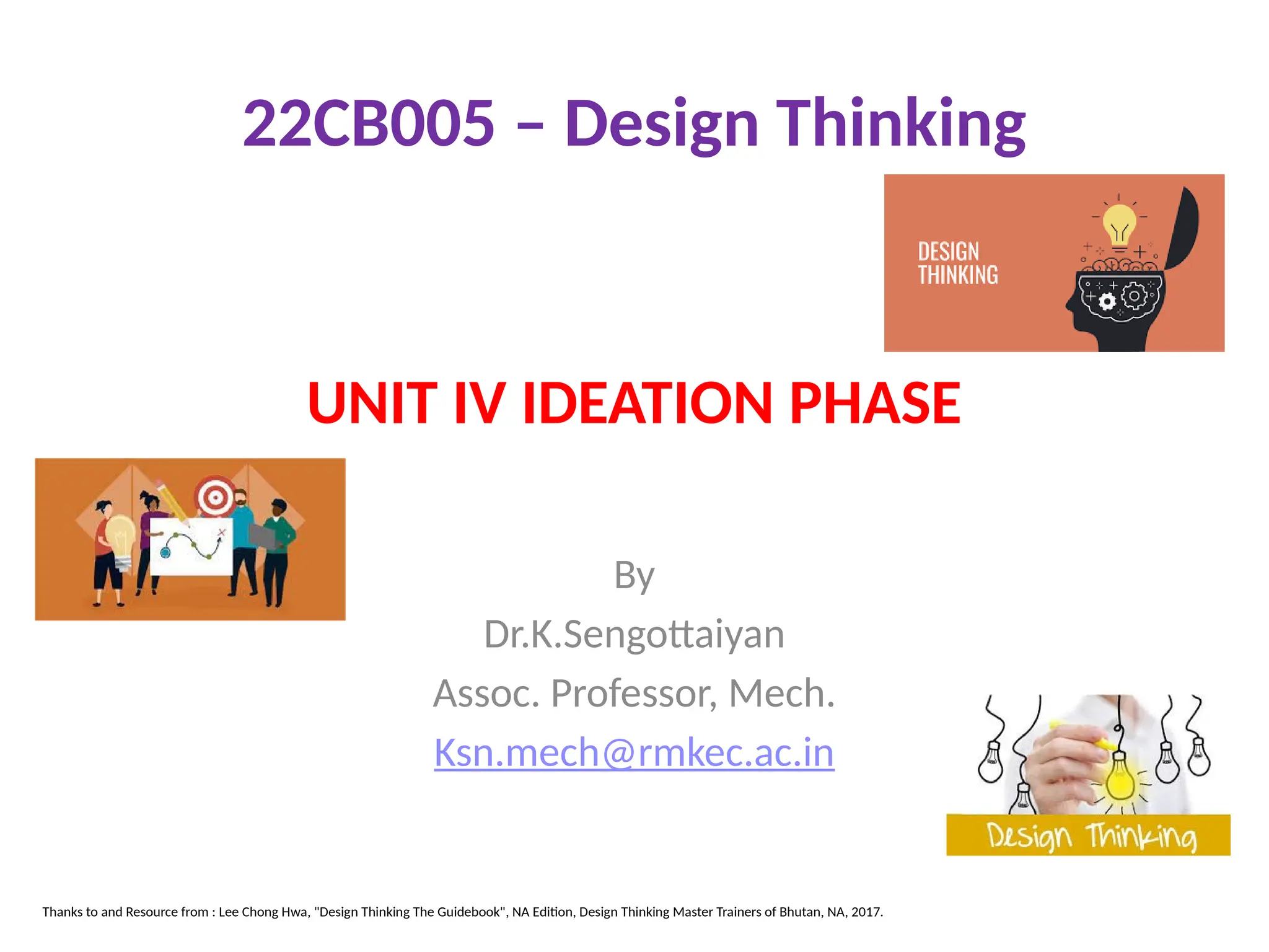 Thanks to and Resource from : Lee Chong Hwa, "Design Thinking The Guidebook", NA Edition, Design Thinking Master Trainers of Bhutan, NA, 2017.