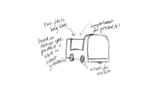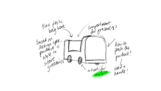 This document outlines three techniques for ideating new product designs: shape-borrowing which involves borrowing shapes from other objects, SCAMPER which is a mnemonic for ways to modify ideas such as combining or modifying attributes, and attribute listing to brainstorm changes to attributes like wheels, style, handles, and materials of a product. It provides examples of applying these techniques such as modifying a hand sketch to show size and use, and listing potential attribute changes for wheels, style, handles, and materials. The goal is to use these techniques to develop a final new product idea.