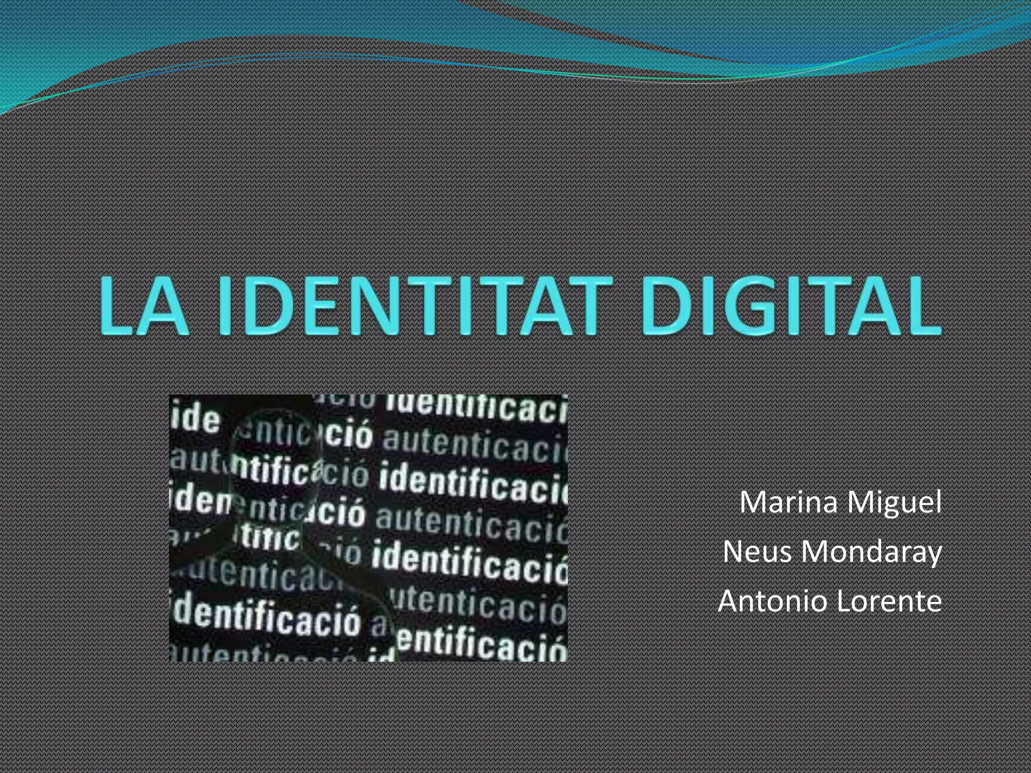 Identitat presencialIdentitat digitalNoimplica un cara a cara.Pot ser real o fictícia. Variable.El context és l’Internet.Creada per tothom.Es troba sotmesa a la fragmentació i la multiplicitat.Implica un cara a cara.Real.Menys variable.El context és el medi que ens envolta.Creada des del naixement.